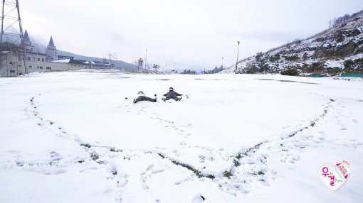 첫 만남 때 ‘모래사장 하트’를 그렸던 민석은 겨울 버전으로 눈밭 하트를 선보인다. 커다란 화이트 하트 안에 누운 두 사람은 천사 날개를 만들며 로맨틱한 시간을 보낸다.