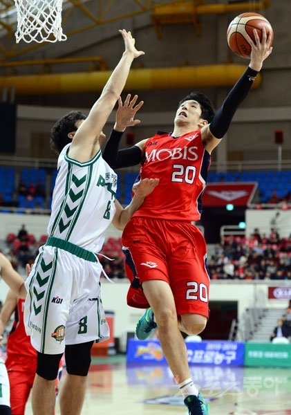 13일 울산 동천체육관에서 열린 '2015-2016 KCC 프로농구' 울산 모비스와 원주 동부의 경기에서 모비스 김수찬이 동부 김창모의 수비를 피해 슛을 쏘고 있다.