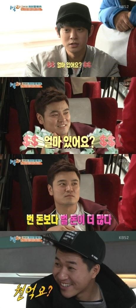 연봉에 대한 질문에 옆에 있던 김준호가 “대충 1000억원대 연봉 아니겠냐”고 대신 대답했고 김종민을 비롯한 멤버들은 놀라움에 입을 다물지 못했다.