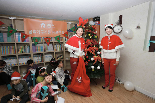 KLPGA투어의 차세대 여왕으로 떠오른 박성현이 산타로 변신했다. 15일 서울 영등포구 한울 지역아동센터를 찾은 박성현이 크리스마스를 앞두고 산타클로스 복장을 하고 아이들과 함께 즐거운 시간을 보내고 있다. 사진제공|넵스