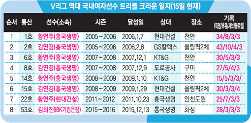 ■ 여자선수 3번째·통산 8번째 ‘트리플 크라운’