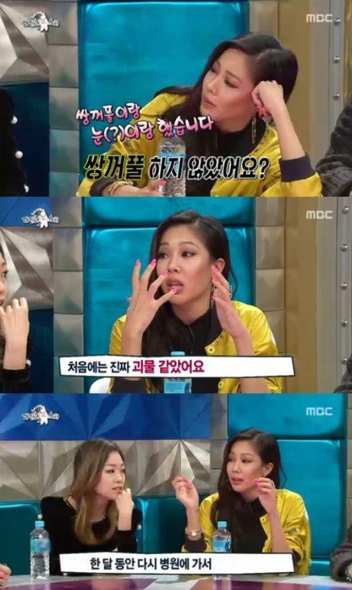 이날 제시는 “눈 쌍커풀과 코를 했다”라며 “끝을 했는데 괴물 같아서 울었다. 한달 동안 실밥 다 뺀다고 막 그랬다. 피노키오 같더라”라고 말했다.
