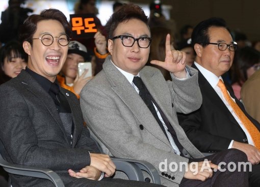 방송인 하하(왼쪽)와 박명수가 17일 오전 경기 일산 킨텍스에서 열린MBC '무한도전' 엑스포 개막식에 참석해 익살스런 포즈를 취하고 있다.