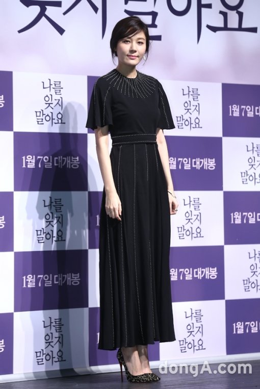 배우 김하늘이 17일 오전 서울 강남구 압구정CGV에서 열린 영화 ‘나를 잊지 말아요’ 제작발표회에 참석해 포토타임을 하고 있다.