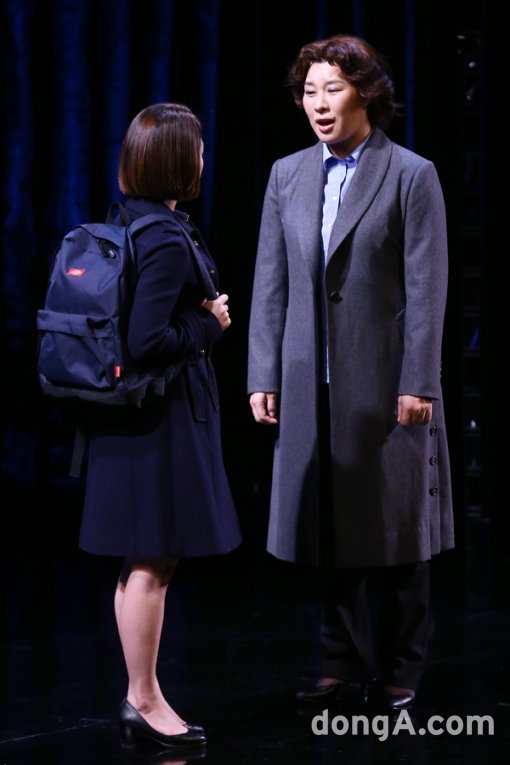 배우 정영주, 전성민이 17일 오후 서울 종로구 두산아트센터에서 열린 뮤지컬 ‘넥스트 투 노멀’ 프레스콜 무대에서 공연을 하고 있다.