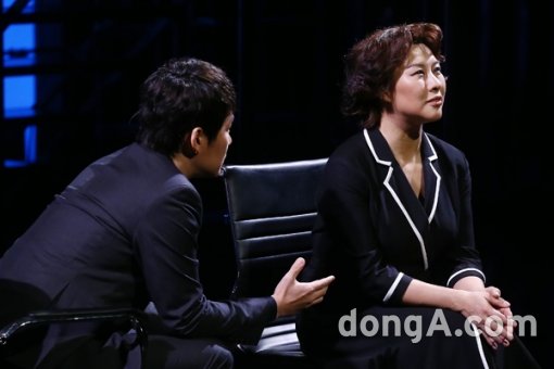 배우 정영주가 17일 오후 서울 종로구 두산아트센터에서 열린 뮤지컬 ‘넥스트 투 노멀’ 프레스콜 무대에서 공연을 하고 있다.