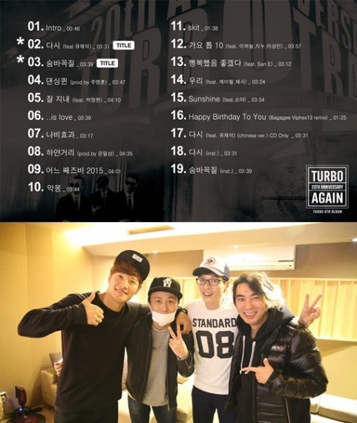 소속사 더터보컴퍼니 측은 18일 공식 페이스북과 인스타그램 계정 등을 통해 터보 6집 ‘어게인’(AGAIN)의 트랙리스트를 공개했다.