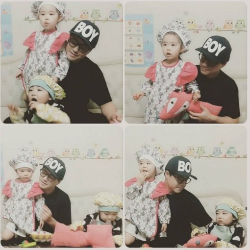 사진 속 노유민은 딸 노아, 노엘 양과 함께 요리 놀이를 하며 '딸바보'의 면모를 보여주고 있다.