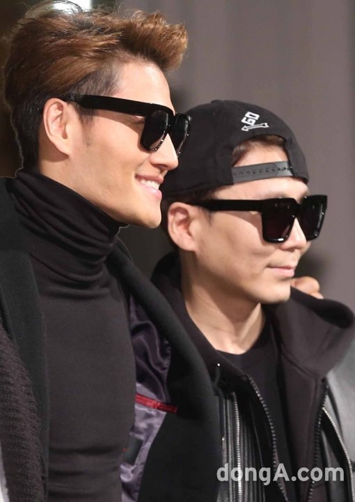 터보의 김종국(왼쪽)과 마이키가 18일 오후 서울 강남구 리버사이드호텔에서 열린 터보 6집 앨범 'AGAIN' 컴백 기자회견에 참석해 포토타임을 하고 있다.