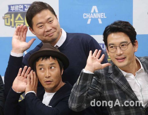 방송인 현주엽, 김병만, 박정철이 18일 오후 서울 마포구 상암동 동아미디어센터에서 열린 채널A '머슴아들' 기자간담회에 참석해 포토타이믈 하고 있다.