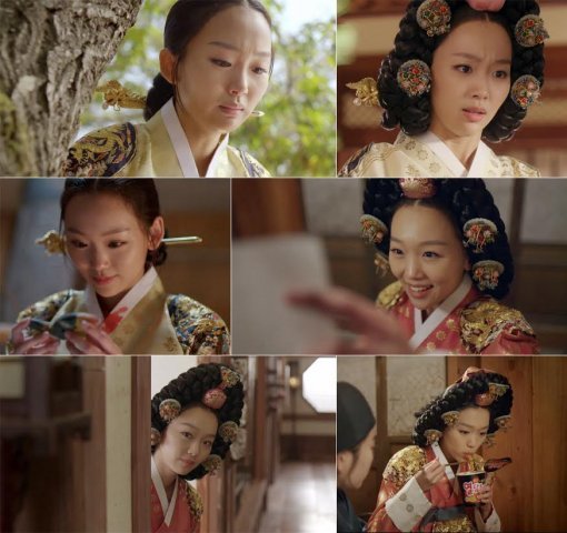 또한, 지난 20일 방송분에선 가채를 벗어 던지고 흐트러진 머리로 단비를 찾아나선 이도를 쫓는 중전의 모습과 함께 자신의 어릴 적 친구였던 연(안효섭)과 재회하면서 옛 추억을 떠올리고 자신이 좋아하는 그림을 마음껏 그리는 등 중전의 절절하고 애틋한 모습을 그려내기도 했다.
