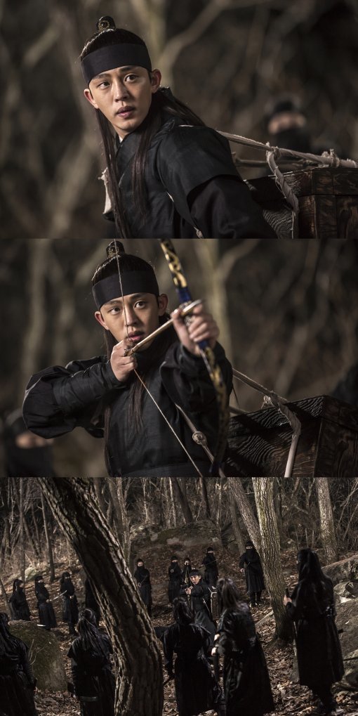 함께 공개된 또 다른 사진에서 이방원은 매서운 눈빛으로 누군가를 향해 활을 겨누고 있다. 팽팽하게 시위를 쥐고 있는 손과 목표를 뚫어지게 응시하는 이방원의 강렬한 눈빛에서 일촉즉발 긴장감이 흘러 넘친다.