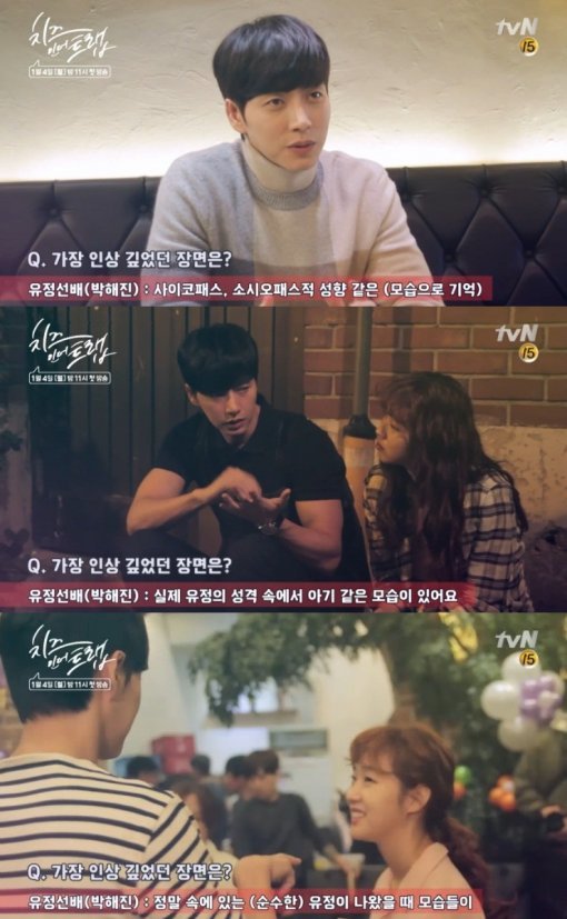 이날 박해진은 "많은 분들이 유정을 사이코패스, 소시오패스 같은 모습으로 기억을 하는데 설이와 함께 있을 때는 아기 같은 면이 있다"며 "정말 속에 있는 유정의 모습들이 나왔을 때가 기억에 많이 남더라"고 말했다.