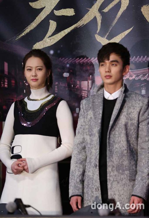 배우 고아라(왼쪽)와 유승호가 22일 오후 서울 건대입구 롯데씨네마에서 진행된 영화 '조선마술사' 언론시사회에 참석하고 있다.