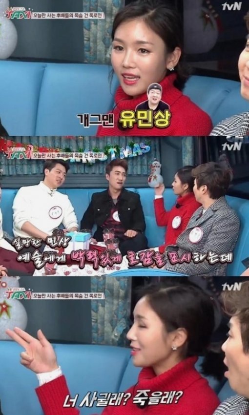 ‘택시’에 출연한 개그맨 홍예슬이 선배 유민상에게 대시를 받았다고 폭로해 관심이 집중됐다.