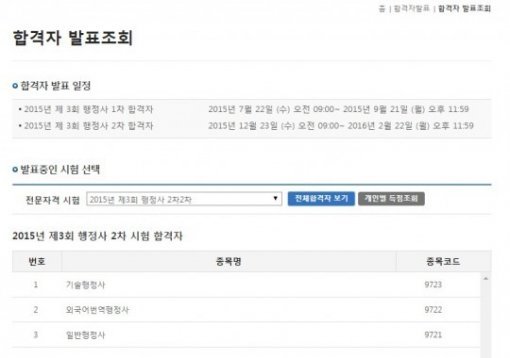 행정사 최종합격자 발표가 23일 오전 9시부터 시작됐다.