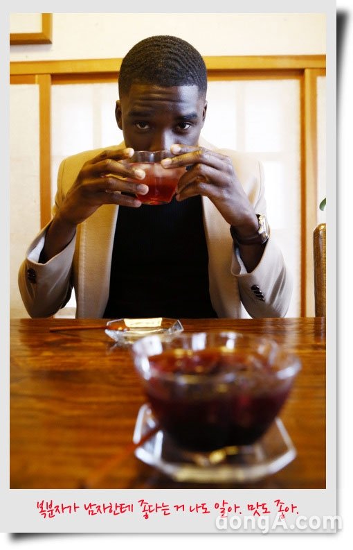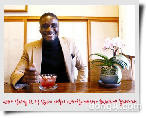 샘 오취리 : 맞아. 4월에 왔는데 엄청 추워서 깜짝 놀랐어. 빨리 적응해야 할 거 같아서 일부러 산책을 하기도 했지. 2~3년 동안 많이 힘들었어. 2009년에 MBC ‘로드넘버원’이라는 드라마에 엑스트라로 출연한 적이 있거든? 강원도 산에서 촬영했어. 이후에는 겨울에 아무리 추워도 견딜 수 있지. 살면서 그런 추위는 처음이었어!!!!