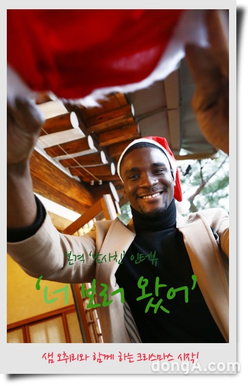 사랑이 넘치는 해피 크리스마스를 맞이해 동아닷컴은 가나에서 온 훈남 샘 오취리를 만났습니다. 북촌 한옥마을에서 전통 차를 마시며 진행했던 샘 오취리와의 조금은 특별한 크리스마스 데이트. 궁금하시죠? 동아닷컴이 야심차게 기획한 ‘스타 매력 대방출’ 프로젝트(부제-들어올 땐 네 맘이지만 나갈 땐 아니란다), 오늘의 ‘남사친’ 샘 오취리의 “너 보러 왔어” 지금 시작합니다.(해당 기사는 친구 사이의 수다 콘셉트에 따라 반말로 작성됐습니다.)