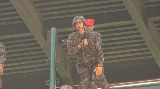 타워 위에 올라서자 멤버들은 하나같이 얼굴이 하얗게 질리기 시작했다. 특히 해병대 교육단 시절부터 숱하게 고소공포증을 앓았던 이성배는 타워 위에서 또 한 번 정신을 잃었다는 후문.