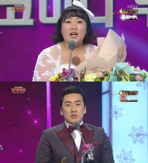 이수지와 이상훈이 우수 코미디언 상을 받았다.
