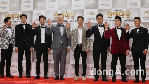 26일 오후 서울 여의도 KBS신관 공개홀에서 열린 2015 KBS 연예대상에서 우리동네 에체능 출연진이 참석해 포토타임을 하고 있다.