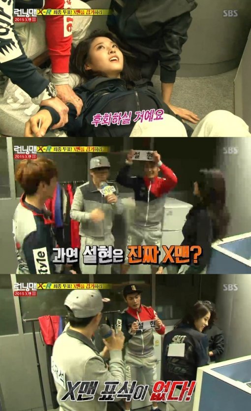 그러나 김지민에 의해 이름표가 뜯긴 설현은 X맨이 아니었고 그는 억울함에 "나는 아니라고 하지 않았느냐"라고 투정을 부려 웃음을 자아냈다.