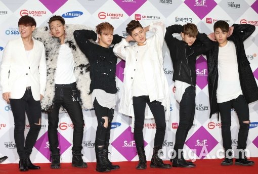 그룹 아이콘이 27일 오후 서울 강남구 코엑스에서 열린 2015 SAF 가요대전에 참석해 포토타임을 하고 있다.