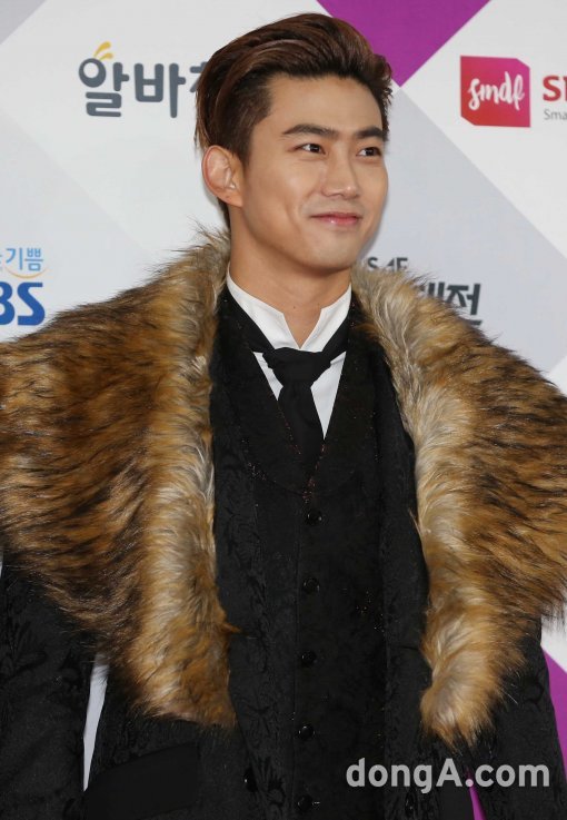 그룹 2PM의 택연이 27일 오후 서울 강남구 코엑스에서 열린 2015 SAF 가요대전에 참석해 포토타임을 하고 있다.