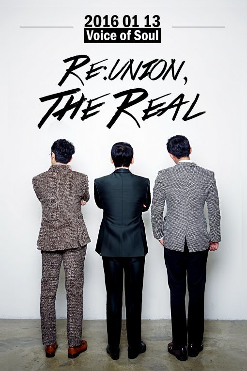 포스터 속에서는 깔끔한 수트를 입은 3명의 V.O.S 멤버들의 뒷모습과 함께 앨범명 ‘Re:union, The real’을 담았다. 티저 포스터 속에서 3명의 멤버들의 뒷모습만 보여주고 있어 많은 팬에게 새로운 앨범에 대한 추측과 기대감을 높이고 있다.