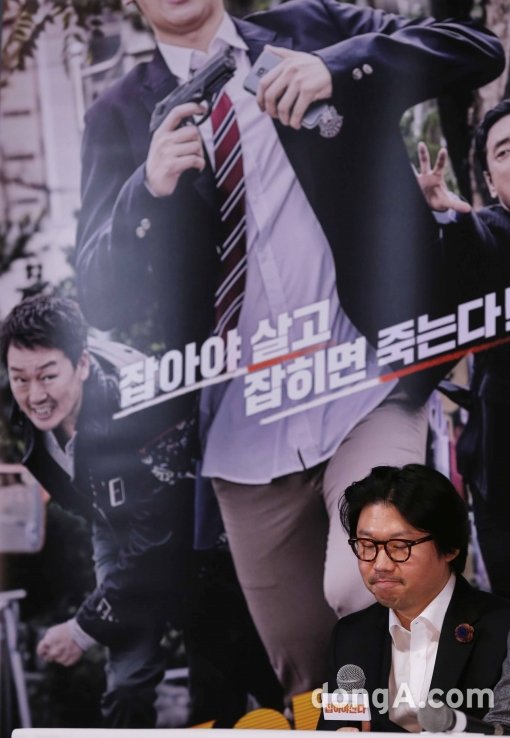 오인천 감독이 28일 오후 서울 광진구 롯데시네마 건대입구점에서 열린 영화 잡아야 산다 언론시사회에 참석하고 있다.