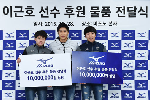 이근호(30, 전북현대)가 후배들과 함께 따뜻한 연말을 보냈다. 이근호는 28일(월) 오전 서울 상암동 미즈노코리아에서 진행된 후원 물품 전달식에 참여, 후배인 오성진, 이제석 선수에게 각각 1천만원 상당의 미즈노 물품을 후원하기로 했다.