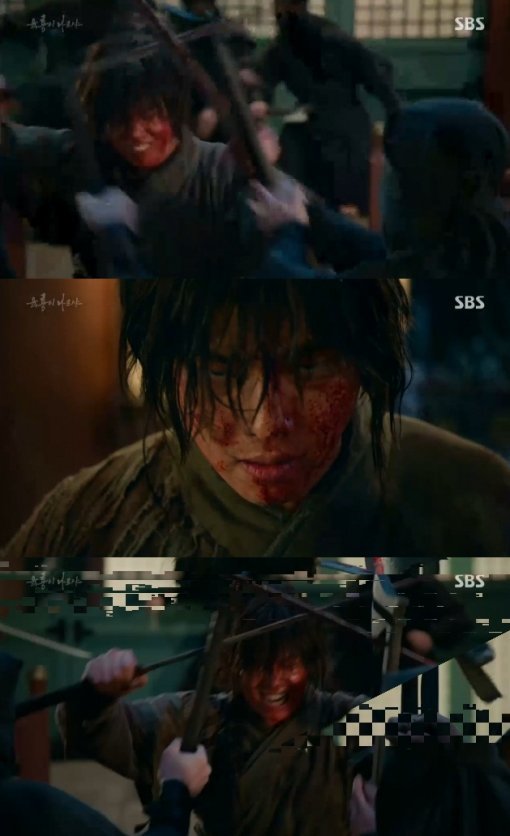 이후 무휼은 "가서 장군님을 구하라"는 명령에 검 두개를 들고 도화전에 가득 모인 자객들을 단번에 처치해 안방의 시청자들을 압도했다.
