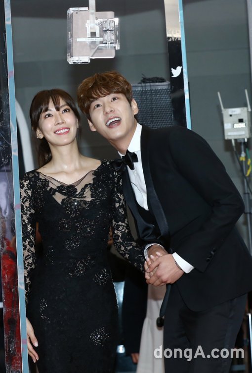 배우 김소연(왼쪽), 곽시양이 29일 오후 서울 마포구 상암MBC에서 열린 2015 MBC 방송연예대상 시상식에 참석해 포토타임을 하고 있다.