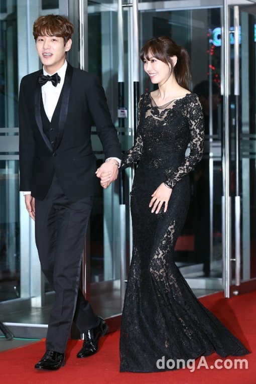 배우 곽시양(왼쪽), 김소연이 29일 오후 서울 마포구 상암MBC에서 열린 2015 MBC 방송연예대상 시상식에 참석해 포토타임을 하고 있다.