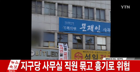 침입한 50대 남성은 지구당 사무실에서 직원을 묶고 흉기로 위협을 가하며 인질극을 벌인 것으로 알려지고 있다.