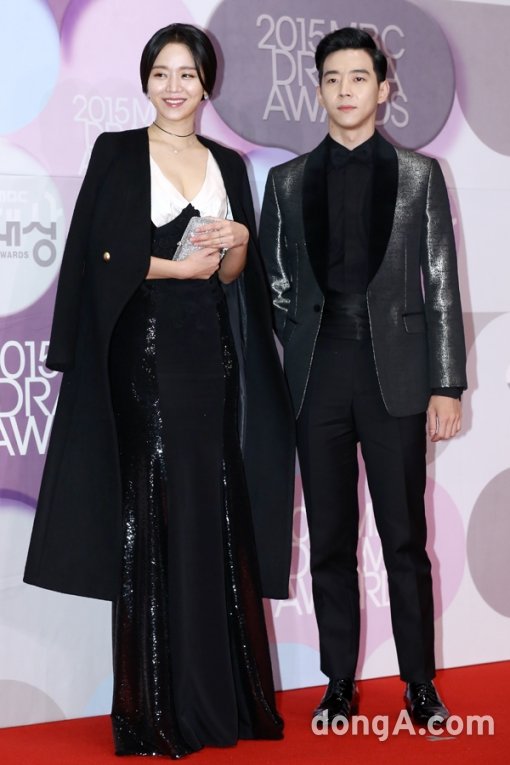 배우 신혜선(왼쪽), 박유환이 30일 오후 서울 마포구 상암MBC에서 열린 2015 MBC 방송연기대상 시상식에 참석해 포토타임을 하고 있다.