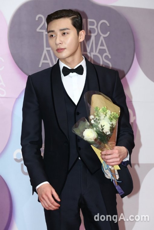 배우 박서준이 30일 오후 서울 마포구 상암MBC에서 열린 2015 MBC 방송연기대상 시상식에 참석해 포토타임을 하고 있다.