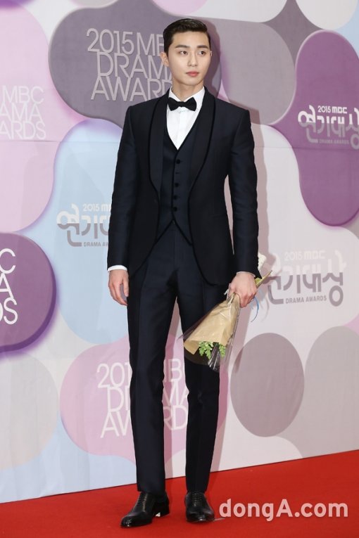 배우 박서준이 30일 오후 서울 마포구 상암MBC에서 열린 2015 MBC 방송연기대상 시상식에 참석해 포토타임을 하고 있다.