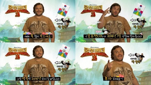 “코리아, 새해 복 많이 받으세요”라는 유쾌한 새해 인사로 시작되는 이번 영상은 ‘쿵푸팬더’ 시리즈의 상징인 잭 블랙의 파워풀한 에너지를 통해 유쾌한 웃음을 전한다. 푸근한 몸집, 반전 있는 사랑스러운 미소로 팬더 '포'와 100%의 싱크로율을 보이는 잭 블랙은 “행복한 2016년 되시길 바랍니다”라며 한국 관객들의 새해 행복을 기원한다. 2016년 1월 20일 ‘쿵푸팬더’ 시리즈 최초 내한이 확정되어 폭발적 관심을 이끌고 있는 ‘쿵푸팬더3’의 잭 블랙은 “부자 되세요!”라고 한국말로 응원의 메시지를 보내 관객들의 기대감을 한층 고조시킨다.