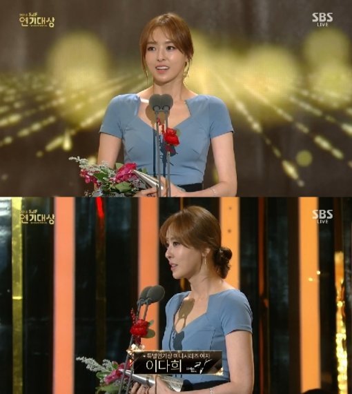이다희는 31일 오후 서울 강남구 삼성동 코엑스 D홀에서 열린 ‘2015 SBS 연기대상’ 시상식에서 특별연기상 미니시리즈 부문을 수상했다.