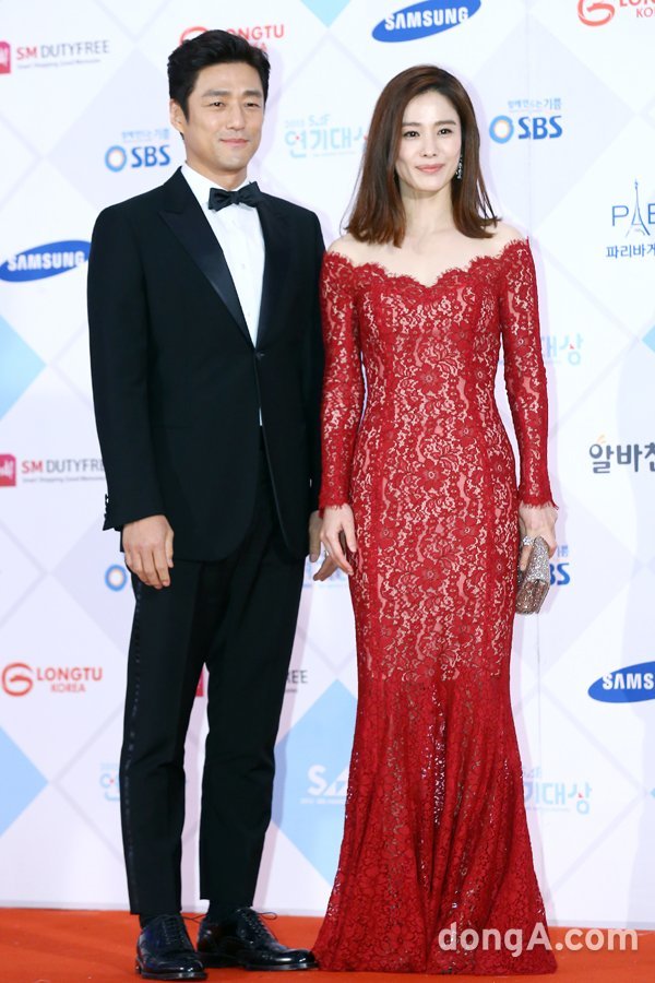 배우 지진희(왼쪽), 김현주가 31일 오후 서울 강남구 코엑스에서 열린 ‘2015 SBS 연기대상’ 시상식에 참석해 포토타임을 하고 있다.