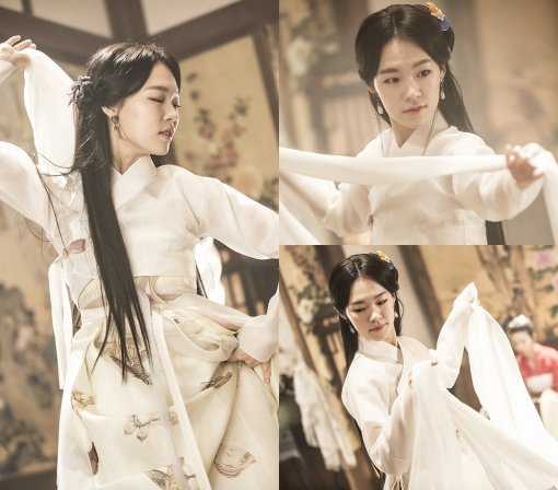 제작진은 27회 본방송을 앞두고 독특하면서도 매혹적인 느낌의 한예리 스틸을 공개했다. 사진 속 한예리는 고려 말, 세상을 홀릴 정도로 고혹적인 춤사위를 펼쳐내고 있다. 밝은 색채의 한복 위에 새겨진 단아한 무늬, 손에 들린 긴 천은 그녀의 움직임에 우아함을 더하며 보는 이의 시선을 사로잡는다. 눈처럼 새하얀 피부, 이와 대비되는 붉은 입술, 길게 늘어뜨린 검은 머리칼 등 한예리 특유의 모습 역시 고전적인 미의 진수를 보여주고 있다.