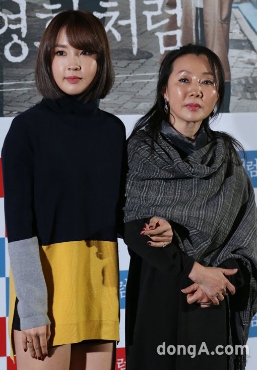 걸그룹 포미닛의 전지윤(왼쪽)과 배우 이영란이 4일 오후 서울 CGV왕십리에서 열린 영화 프랑스 영화처럼 언론배급시사회에 참석해 포토타임을 하고 있다.