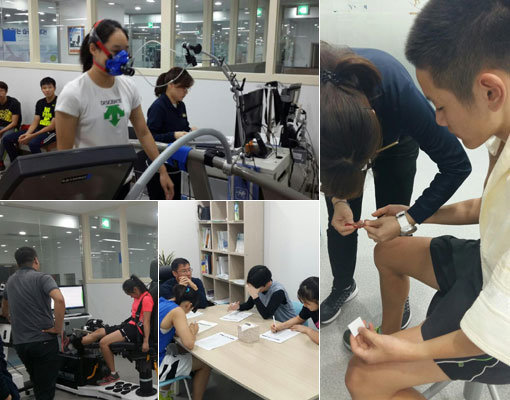 지역스포츠과학센터는 해당 지역 체육회에 등록된 엘리트 선수들이 자신의 체력을 측정한 뒤 그 결과를 토대로 기량 발전을 도모할 수 있도록 지원해주고 있다. 서울스포츠과학센터를 찾은 선수들이 각종 기자재를 활용해 체력을 측정하고 있다. 사진제공|국민체육진흥공단
