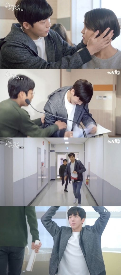 4일 첫 방송된 tvN 월화드라마 ‘치즈인더트랩’ 1회에서 권은택(남주혁)이 짝사랑 중인 장보라(박민지)의 뽀뽀에 ‘호구 매력’을 폭발시켰다.