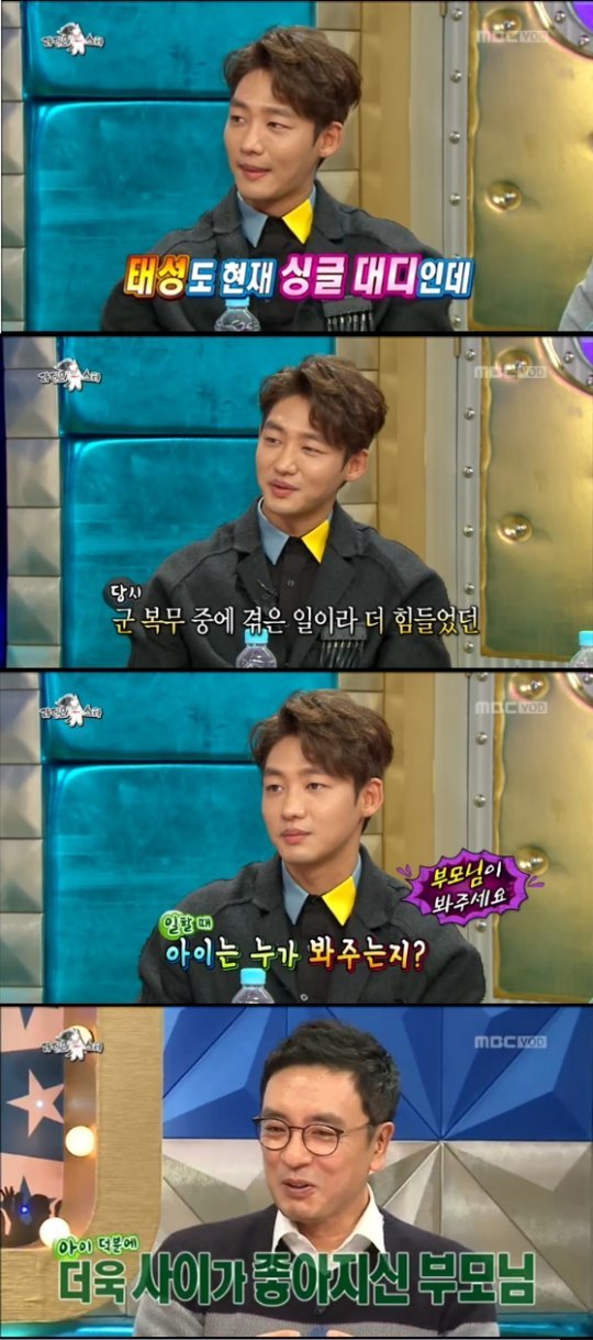이태성은 6일 방송된 MBC ‘황금어장-라디오스타’에서 현재 다섯 살이 된 자녀를 부모님이 봐주고 계신다고 밝혔다.