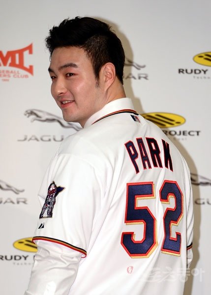 미네소타 트윈스 박병호가 7일 서울 홍은동 그랜드 힐튼 호텔 컨벤션센터에서 입단 국내 공식 기자회견에서 미네소타 유니폼을 입고 포즈를 취하고 있다. 김진환 기자 kwangshin00@donga.com