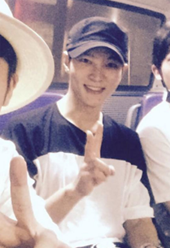 주원, 깜찍 브이… 친구들과 대중교통 이용 포착