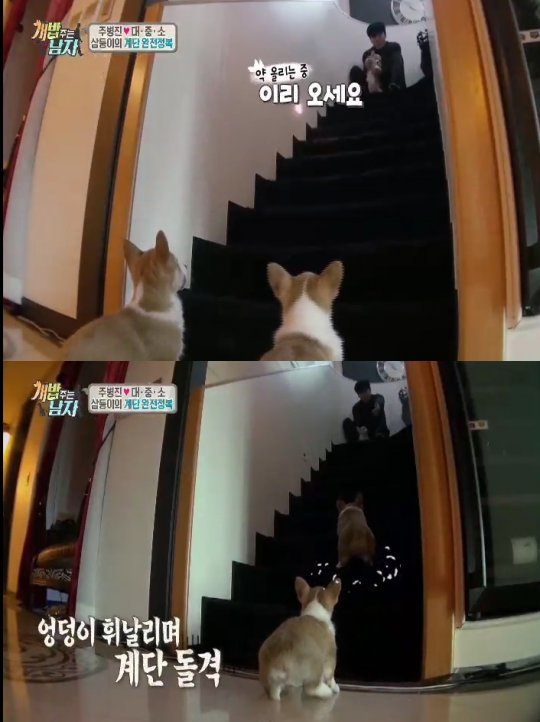 ‘개밥남’ 웰시코기 삼둥이, 계단 오르기 성공…‘뿌듯’