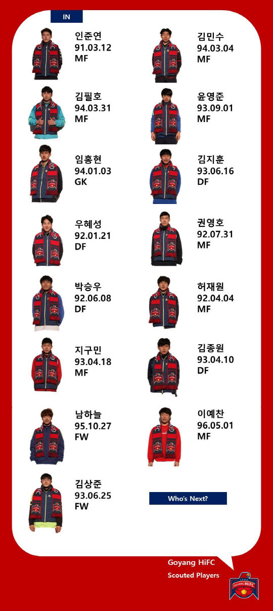 고양HiFC가 청춘FC 출신 남하늘을 비롯해 15명의 신인 선수들을 영입했다.